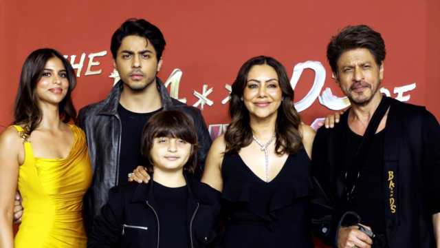 SRK, junto con su esposa Gauri Khan, su hija Suhana Khan y su hijo Abram, llegó al evento para apoyar a Aryan. El estreno de `The Ba *** ds de Bollywood` vio a varias celebridades presentes, pero el dúo padre-hijo sin duda robó el centro de atención.