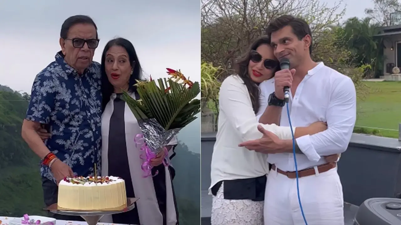 Bipasha llevó a Instagram, donde compartió una serie de videos e imágenes de las celebraciones de aniversario de sus padres. En un video, Karan se puso un atuendo completamente blanco y cantó el número romántico de 1961.