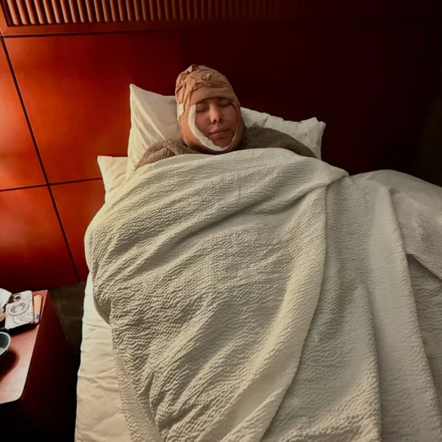 Otro video mostró a Lowry roncando mientras dormía después de la cirugía y luego, al final, nos trataron con este producto final: