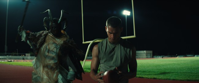 En “Him”, la última película de terror de las producciones de Monkeypaw de Jordan Peele, el prometedor mariscal de campo Cameron Cade (Tyriq Withers) tiene una segunda oportunidad en una carrera después de que un fanático trastornado les da daño y lo deja. La captura: no puede decir si los métodos de entrenamiento poco ortodoxos de su nuevo mentor están destinados a ayudarlo, matarlo o servir a algún otro tipo de propósito insidioso que es imposible de discernir.