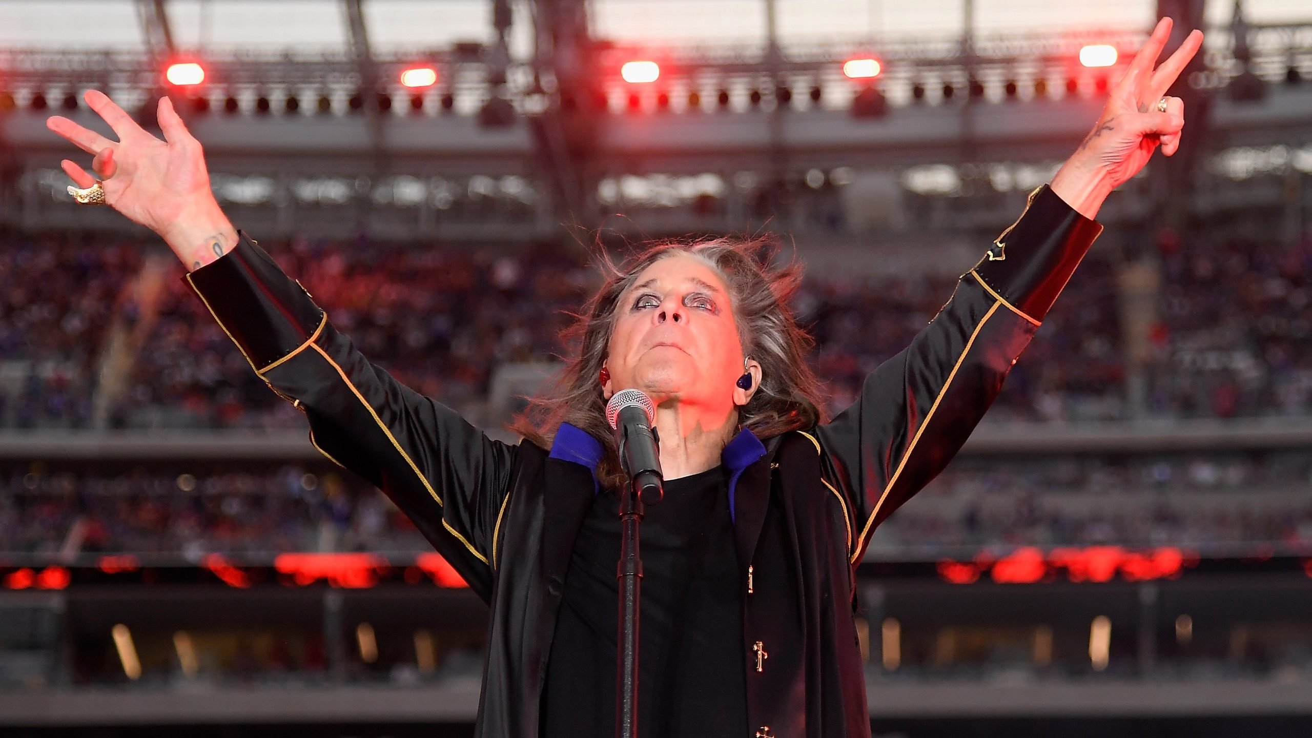 El músico Ozzy Osbourne actúa durante el medio tiempo del juego de la NFL entre Los Angeles Rams y los Buffalo Bills en el Sofi Stadium el 8 de septiembre de 2022. (Crédito de la foto: Kevork Djansezian/Getty Images)