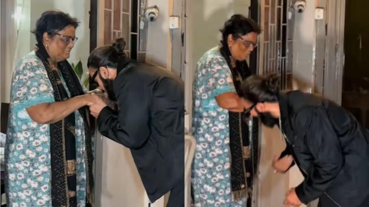 El miércoles por la noche, el actor de Bollywood fue roto por los paparazzi cuando salió de un estudio de doblaje en Mumbai. Sin embargo, tan pronto como salió del estudio, notó que una anciana lo estaba esperando. Ranveer interactuó con ella y la hizo cómoda prestando su apoyo. No solo interactuó con ella, sino también, sino que también se inclinó instantáneamente y tocó sus pies como una marca de respeto, y ella lo bañó con bendiciones. Antes de ir a adiós, el actor también besó dulcemente la mano de la mujer.