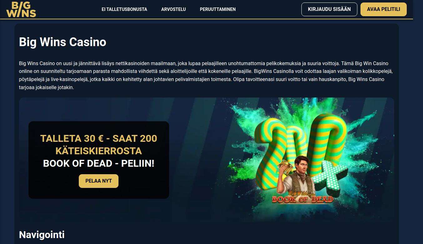 Big Win Casino no solo atiende a jugadores finlandeses con localizaciones y apoyo, sino que también ofrece numerosas razones para que sea su sitio de juego en línea: