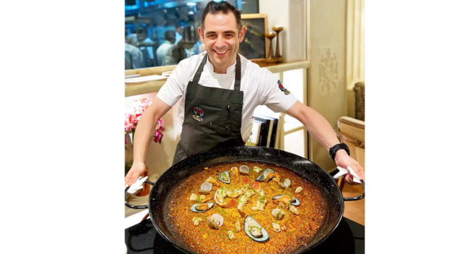 Nos acercamos a su chef-restaurateur Manuel Olveira para arrojar más luz sobre los orígenes del plato. “Paella es de Valencia, en la costa oriental de España. Comenzó como un plato de granjero humilde, cocinado al aire libre sobre los fuegos de madera en sartenes anchos, con arroz, azafrán, algunas verduras y lo que estaba a mano: pollo, conejo, a veces, incluso caracoles”. Olveira explica que con el tiempo, el sólido plato se alejó de los campos, a casas y restaurantes. “Hoy, probablemente sea el plato más emblemático de España. Para nosotros, Paella siempre se ha tratado de compartir, familia y celebración, esa es la verdadera tradición detrás de esto”.
