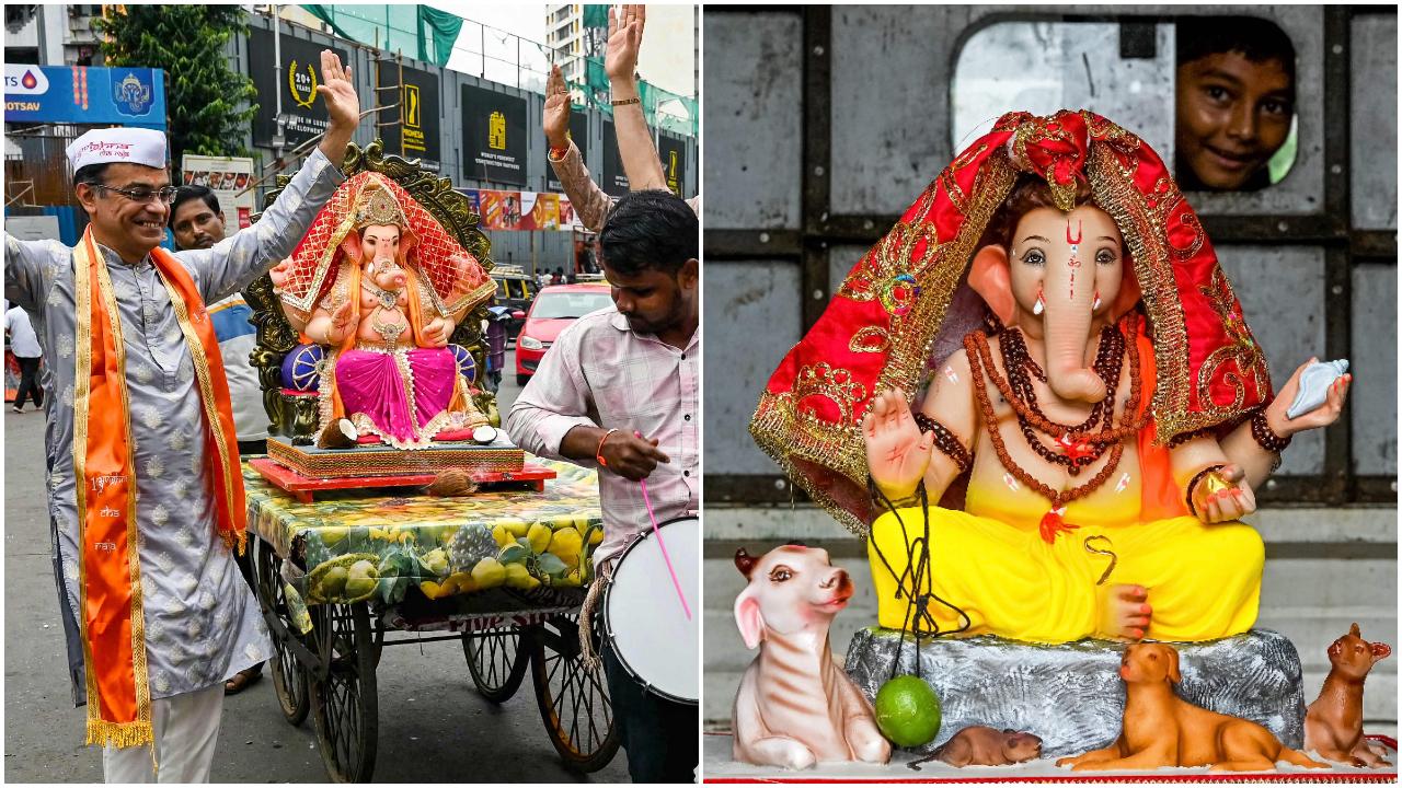 Los cantos de `Ganpati Bappa Morya, Mangal Murti Morya` llenaron el aire de la mañana como pequeños, medianos y grandes ídolos de la deidad, acompañados de latidos rítmicos de ‘Dhol-Tasha`, se dirigieron a los corazones y hogares de los devotos.