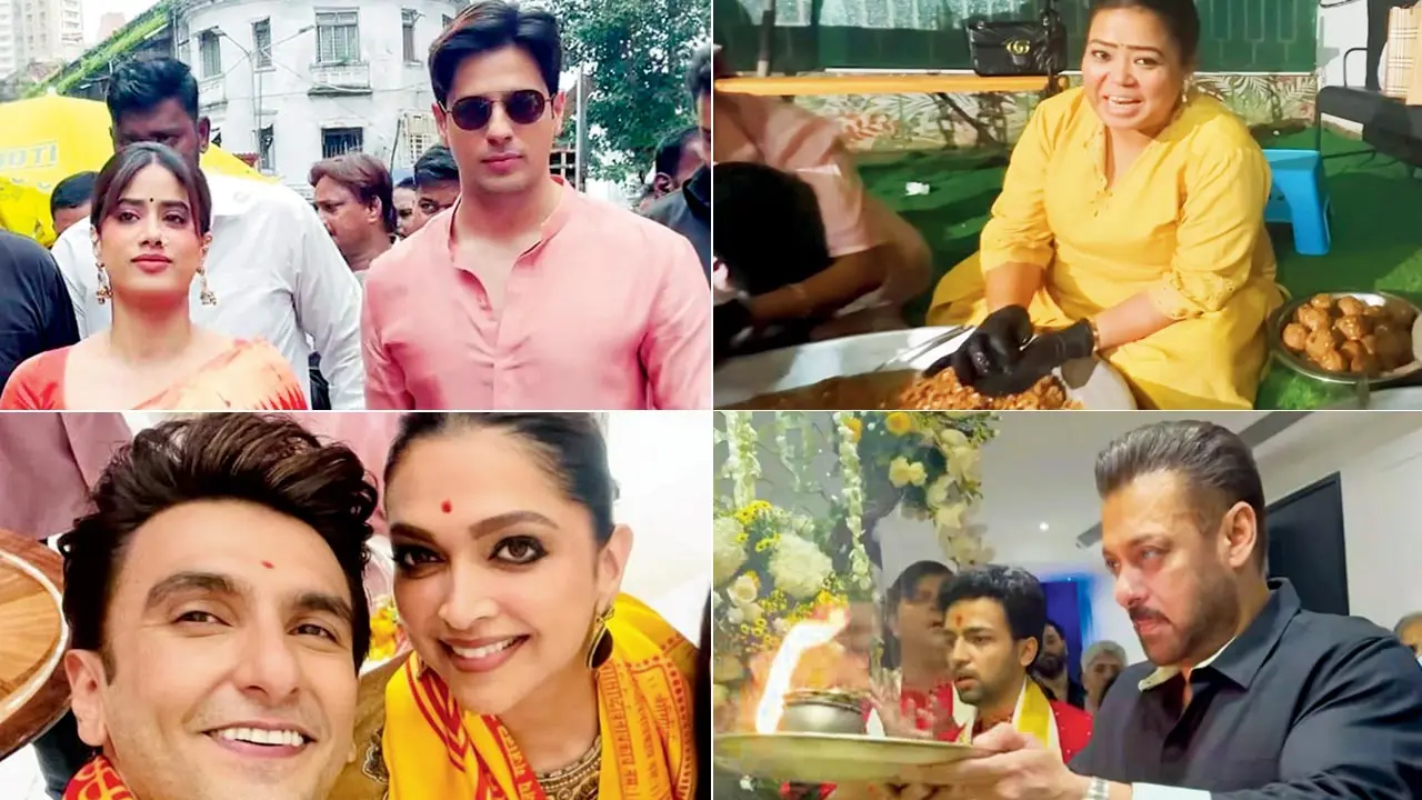 Las celebridades de Bollywood han recibido a Ganpati con un gran fervor en sus hogares y corazones con motivo de Ganesh Chaturthi. Salman Khan dirigió el Aarti junto a sus padres Salma y Salim Khan en su casa, Galaxy, en Bandra, compartiendo un video del bellamente adornado ídolo Ganpati y la devoción familiar. Su subtítulo decía: “Ganpati Bappa Morya”, deleitando a los fanáticos con la calidez de los rituales. El comediante Bharti Singh abrazó un gran desafío al preparar 1001 -Ladoos con su equipo en su día libre. “Trabajaron incansablemente durante casi 12 horas”, reveló Bharti. Al final de la noche, habían superado su objetivo, una hazaña inspirada en un deseo sincero para los Ganpati. Mientras tanto, las estrellas de Bollywood, incluidas Akshay Kumar, Priyanka Chopra, Abhishek Bachchan y Ajay Devgn, compartieron saludos festivos y instantáneas en el hogar. Karan Johar y Rani Mukerji deleitaron a los fanáticos con una selfie vibrante con un ídolo Ganpati. Janhvi Kapoor y Sidharth Malhotra también celebraron las festividades visitando Lalbaug Cha Raja el jueves (29 de agosto), antes de la película, el lanzamiento de Param Sundari hoy. La pareja estrella Deepika Padukone y Ranveer Singh también hicieron una rara aparición pública mientras visitaban Antilla Cha Raja en la residencia Ambani.