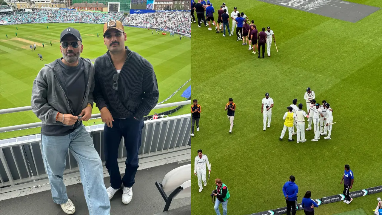 Después de que India ganó el partido, Ahan Shetty acudió a Instagram para compartir vislumbres del óvalo después de la victoria de la India. Ahan compartió un video donde se puede ver a su padre Suniel gritando después de que Mohammed Siraj desestimó al jugador final de Inglaterra y declaró una victoria para la India.