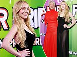 Lindsay llevaba sus cerraduras rubias en olas suaves. La estrella terminó su conjunto con un delicado collar de diamantes y aretes colgantes