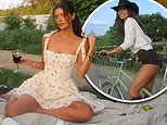 La ex estrella de Love Island, de 34 años, se sorprendió mientras disfrutaba de un picnic al sol mientras usaba un vestido de marfil y leche rosa.
