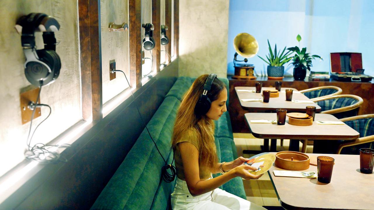 La barra de vinilo dirigida por un DJ alberga más de 220 títulos en su colección. Fotos/Ashish Raje