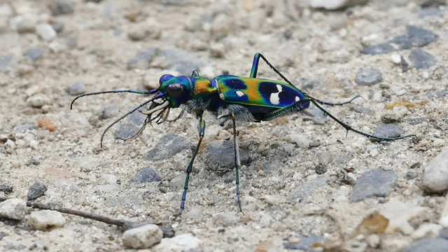 El Tiger Beetle es un insecto rápido y depredador conocido por sus colores vibrantes y metálicos y habilidades de caza ágil. Deriva su nombre de su estilo de tigre de perseguir y cazar a su presa.