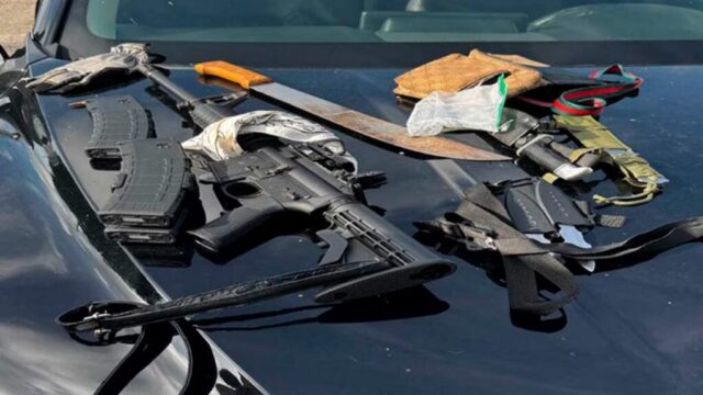 Los agentes encontraron a Rodrigues fuera del vehículo, mientras se vestían. Durante la revisión inicial, encontraron un cargador AR-15 cargado en el compartimento del guante. Esa pista los llevó a inspeccionar el interior del automóvil, donde localizaron el rifle y varios cuchillos escondidos debajo de una manta.
