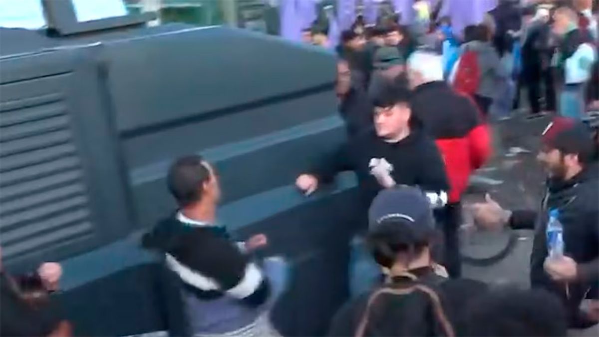 “¿Eres libertario? ¿Te gusta golpear a los abuelos y los discapacitados?” Destaca al hombre que, aparentemente, desató la pelea. El joven realiza gestos con su mano, reproduciendo una burla, que cepilla los espíritus. Minutos después, la situación subió al intercambio de agresiones físicas.