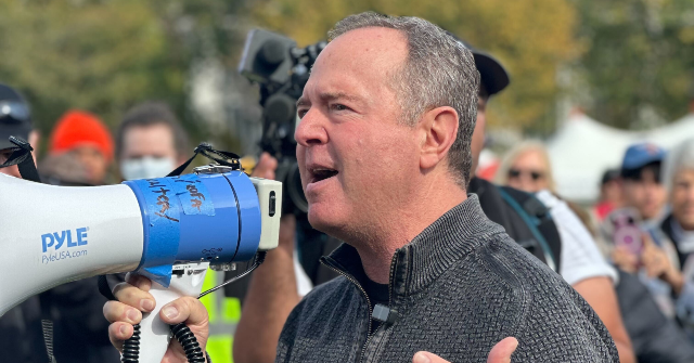 Schiff acababa de terminar de hablar por un megáfono ante los izquierdistas demócratas en las protestas anti-Trump “No Kings” en Washington, DC, cuando Breitbart News preguntó él la pregunta.