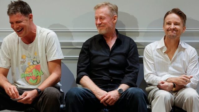 J’accuse: Damon Herriman (izquierda), Toby Schmitz y Richard Roxburgh son amigos que se enfrentan por el gusto en Art.Brett Boardman
