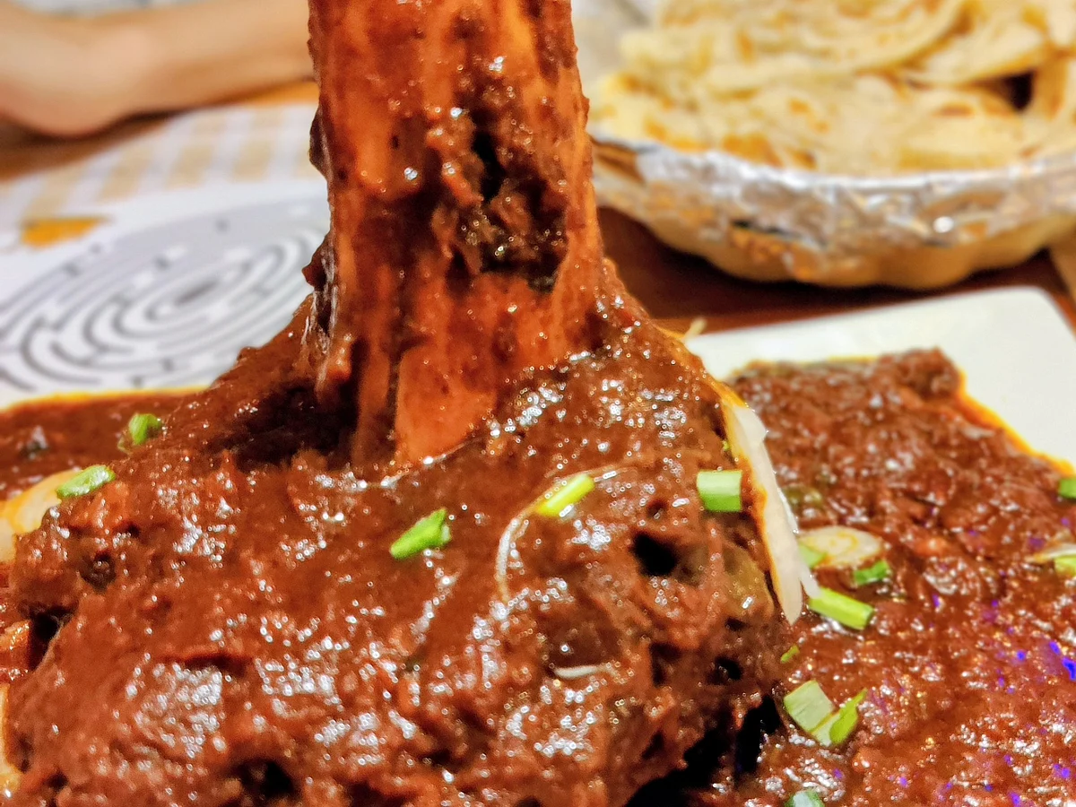 Nuestro ritual es siempre el mismo: comenzar con un té de kadak humeante, poro sobre el menú y asentarse con las parotas de Malabar, el curry de carne de res o el Potthu Kaal especial, un hueso gigante carnoso que nadan en salsa picante. Más tarde, vendrán y se abrirán el hueso para que puedas sacar la rica médula con tu parotta. También hay un cordero fragante biryani, fry de pollo ardiente y arroz frito mantecoso que merece sus propias menciones.