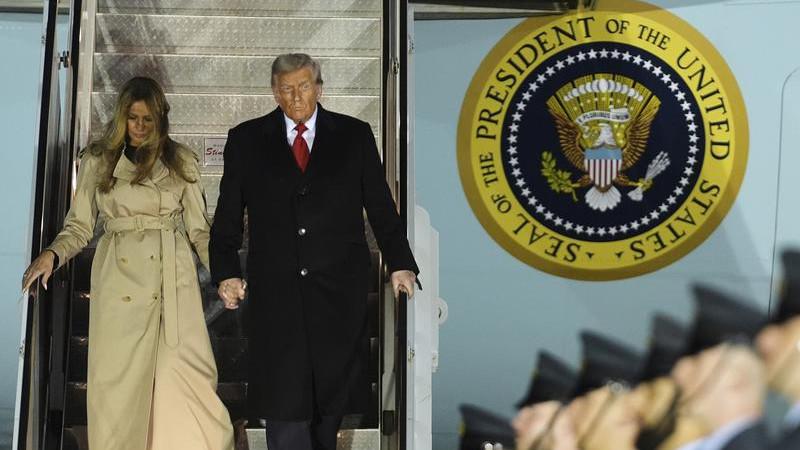 Cuando llegaron Trump y la Primera Dama, descendieron las escaleras de Air Force uno antes de estrechar la mano con dignidades esperadas.