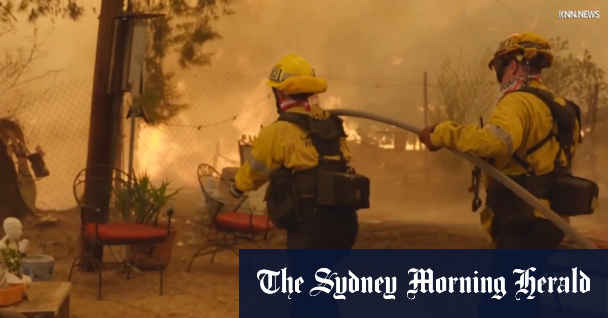 Un incendio forestal se está desatando a través de las montañas al borde de la línea del condado de Los Ángeles en California.