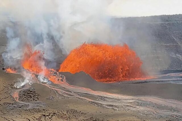 La lava salió del respiradero norte en el cráter Halemaumau después de la medianoche. El respiradero comenzó a disparar fuentes de lava a las 6:35 a.m., dijo el Servicio Geológico de los Estados Unidos.