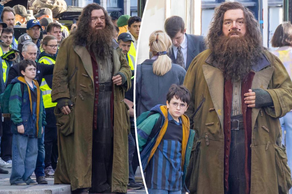 Los actores que interpretan a Harry Potter y Hagrid en la nueva serie de HBO fueron vistos filmando por primera vez en Londres el lunes.