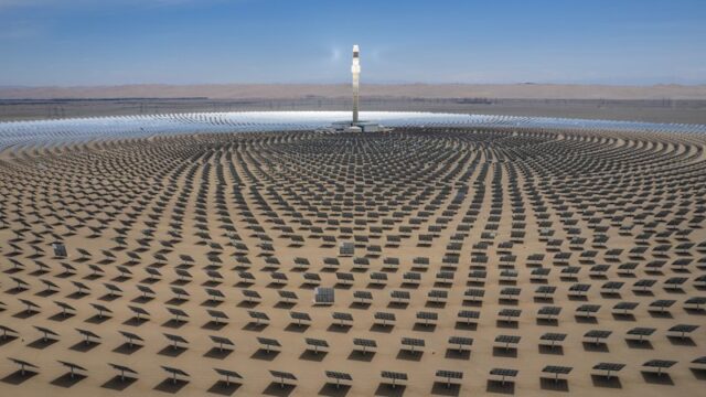 Una central termosolar de torre de sales fundidas en Jiuquan, China. Crédito: Getty Images