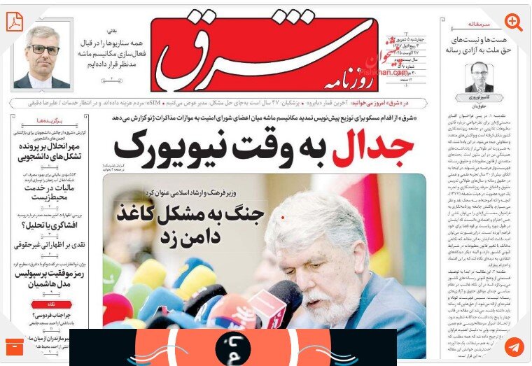 TEHRAN – Shargh analizó la reunión de Ginebra entre los diplomáticos iraníes y europeos como el E3 (Gran Bretaña, Francia y Alemania) ha amenazado con activar el mecanismo de snapback que devolvería todas las sanciones de la ONU contra Irán levantadas bajo el final nuclear de 2015 llamado JCPOA. Escribió: La segunda ronda de conversaciones se celebró en una situación en la que la atmósfera regional e internacional todavía está a la sombra de los ataques de junio del régimen sionista y el apoyo abierto de los Estados Unidos para ello (la guerra de 12 días).