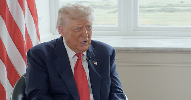 Trump se sentó con Breitbart News durante casi una hora para una entrevista exclusiva en la entrevista en la cámara en su lujoso complejo de golf junto al mar Turnberry aquí en el oeste de Escocia la semana pasada, justo antes de que el primer ministro británico, Keir Starmer, llegara para una reunión bilateral y disponibilidad de prensa con el presidente. La respuesta a esta pregunta en particular llegó justo momentos antes de que Starmer se detuviera en la propiedad para la aparición junto con el presidente.