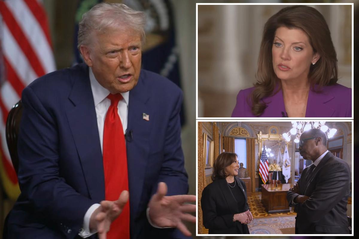 Trump presentó una demanda por una entrevista de octubre de 2024 que Bill Whitaker (derecha) de “60 Minutes” hizo con la entonces vicepresidenta Kamala Harris. 60 minutos / CBS