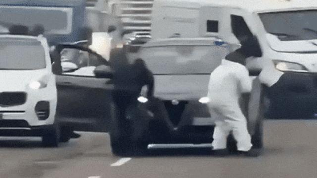 El atraco fue capturado en video por los conductores que pasaban con sus teléfonos.