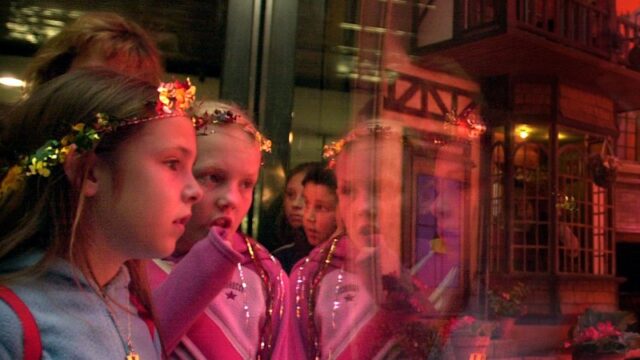 Los niños miran las ventanas navideñas de Myer en 2001. Crédito: Dominic O’Brien
