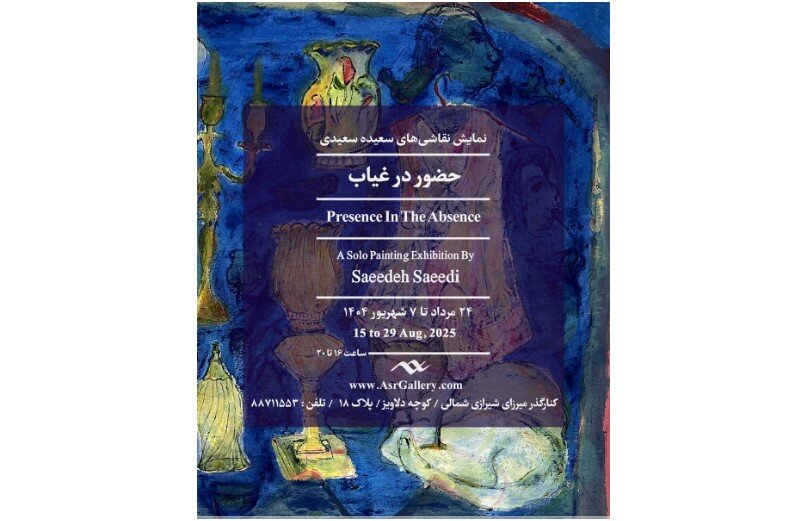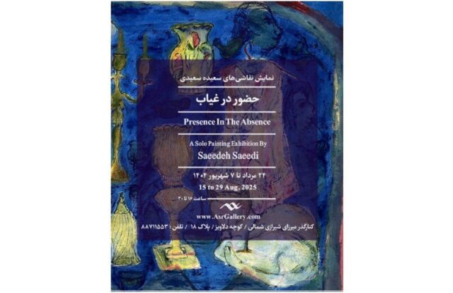 ASR Gallery presenta una exposición de pinturas de Saeideh Saeidi. La exhibición titulada “Presencia en la ausencia” se extenderá hasta el 29 de agosto en la galería ubicada en 18 Delaviz St., en el norte de Mirzaye Shirazi St.