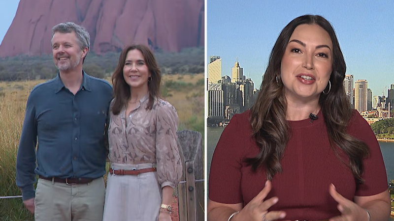 La reina María de Dinamarca y el rey Federico contemplan la puesta de sol en Uluru mientras comienzan una histórica visita de estado, comenta la reportera real Natalie Oliveri.