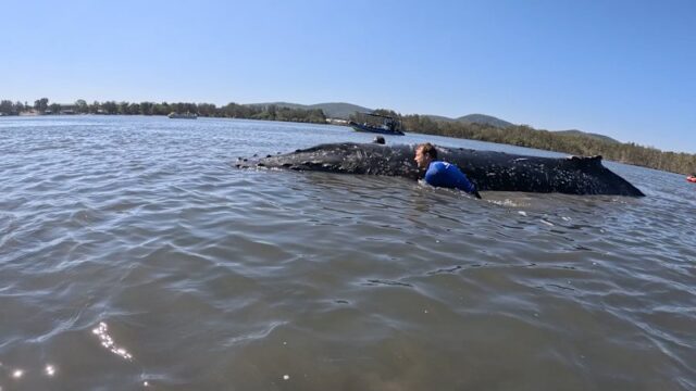 El jefe de ciencias marinas de la Fundación Sea World, Wayne Phillips, dijo que la ballena, que estuvo en el banco de arena durante aproximadamente 24 horas antes de que llegaran los rescatistas, había sufrido quemaduras solares.