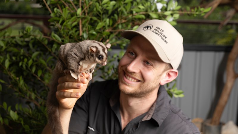 Ben Dessen de Hills Wildlife Sanctuary, con un planeador de ardilla. Dessen dice que se necesita un acuerdo de financiación más consistente para el rescate de vida silvestre. Sitthixay Ditthavong