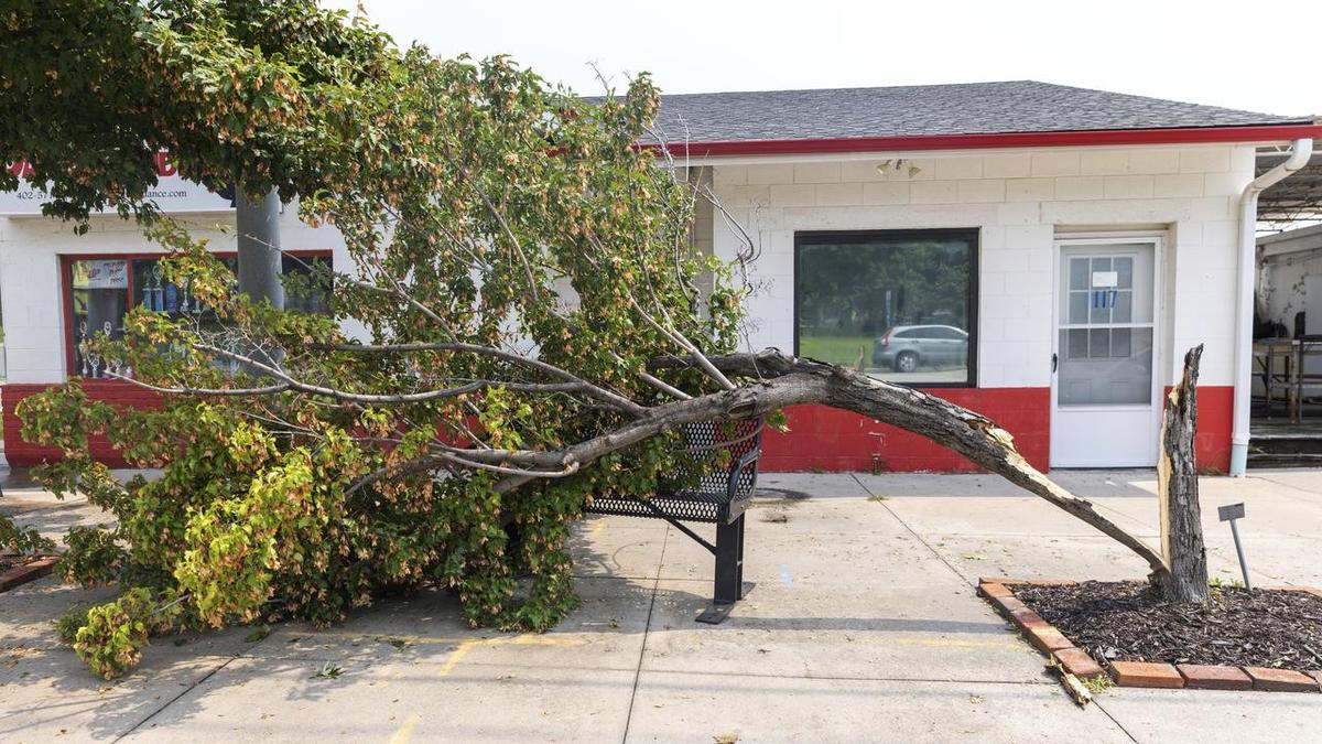 Los fuertes vientos causaron daños generalizados en el este de Nebraska, derribar árboles, dañar techos y tirar de líneas eléctricas.