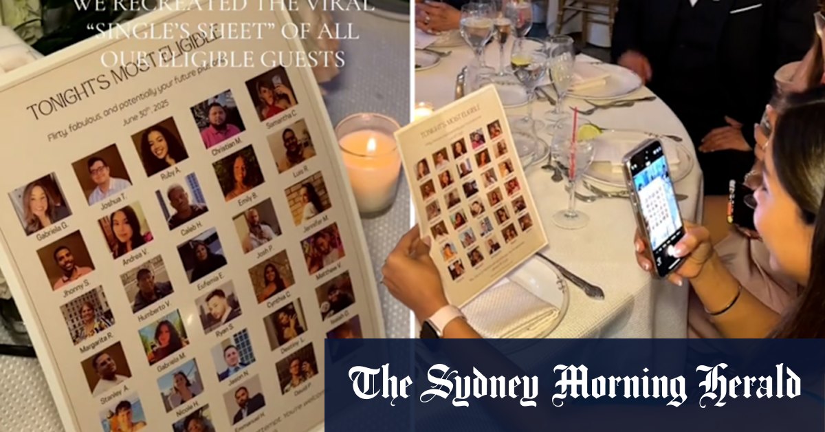 Tiktoker ha compartido un video de uno de su bricolaje de bodas, recreando la ‘hoja de single’ viral con un collage de fotos de sus invitados, titulada la más elegible de esta noche.