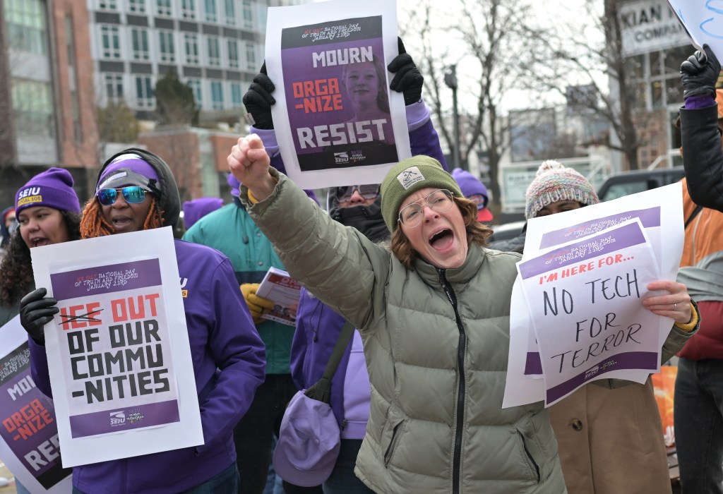 Palantir enfrentó una gran protesta el 31 de enero en su nueva oficina de Cherry Creek y otra este fin de semana, con manifestantes gritando “Palantir fuera de Denver” y “No a IA para ICE”.