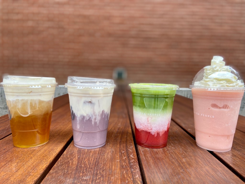 Gardner describió a Milk Tea People como un “restaurante que sirve bebidas”. Hace todo desde cero, con los trabajadores en la parte de atrás cortando fruta y haciéndola puré mientras los que están al frente ayudan a los clientes a seleccionar una de las dos docenas de bebidas en el menú. El matcha proviene de Kioto y Uji, dos ciudades japonesas, y sus hojas de té provienen de provincias de toda China.