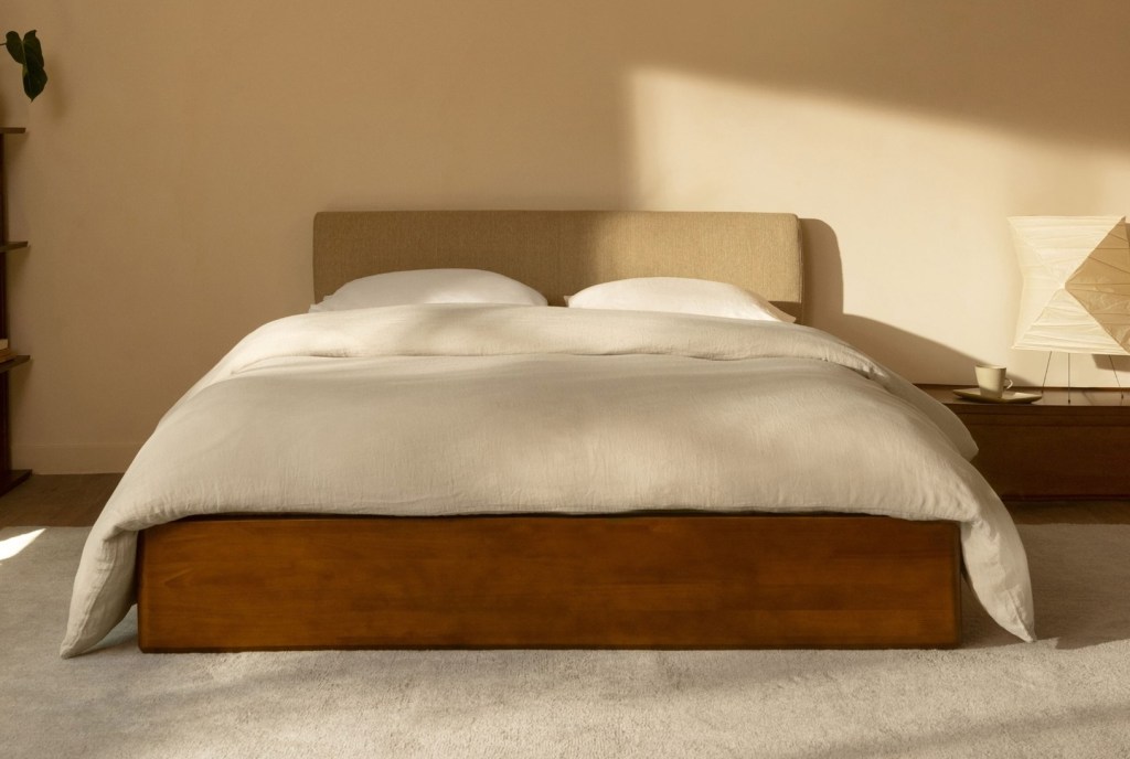 Una estructura básica de cama tamaño queen y una cabecera de Thuma se venden por $2,000. La empresa también vende sofás, mesas, alfombras y otros complementos de mobiliario.