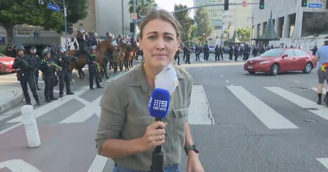 Lauren Tomasi recibió un disparo en la pierna con una bala de goma por uno de los oficiales de policía sobre su hombro derecho. (9News)