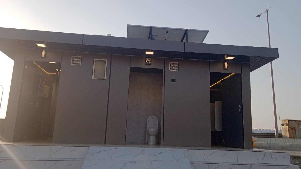 Cada unidad modular de bio-inodoro mide 20 x 20 x 8 pies y funciona con un sistema de energía solar de 1 kW. La instalación incluye dos baños para mujeres (uno de estilo occidental y otro de estilo indio), dos baños para hombres, un baño para niños y un baño de estilo occidental para personas con discapacidad. Además, la unidad está equipada con seis urinarios, tres lavabos, tres espejos con sensores, tres dispensadores de jabón, un incinerador de toallas sanitarias, una máquina expendedora de toallas sanitarias, un tanque de agua de 1.000 litros y un biodigestor DRDO de 3.000 litros.