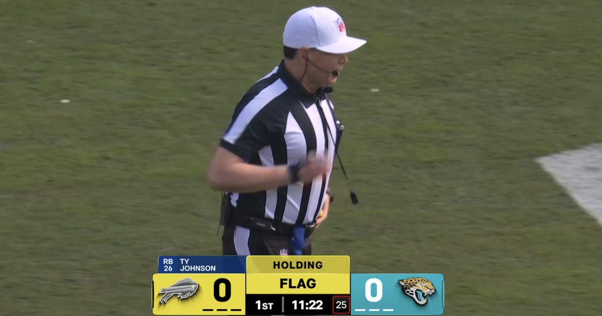 El locutor de CBS Sports, Jim Nantz, se vio obligado a corregir un error al comienzo del partido de playoffs de la NFL del domingo entre los Jacksonville Jaguars y los Buffalo Bills, ya que un jugador inactivo fue sancionado con una penalización por sujetar.