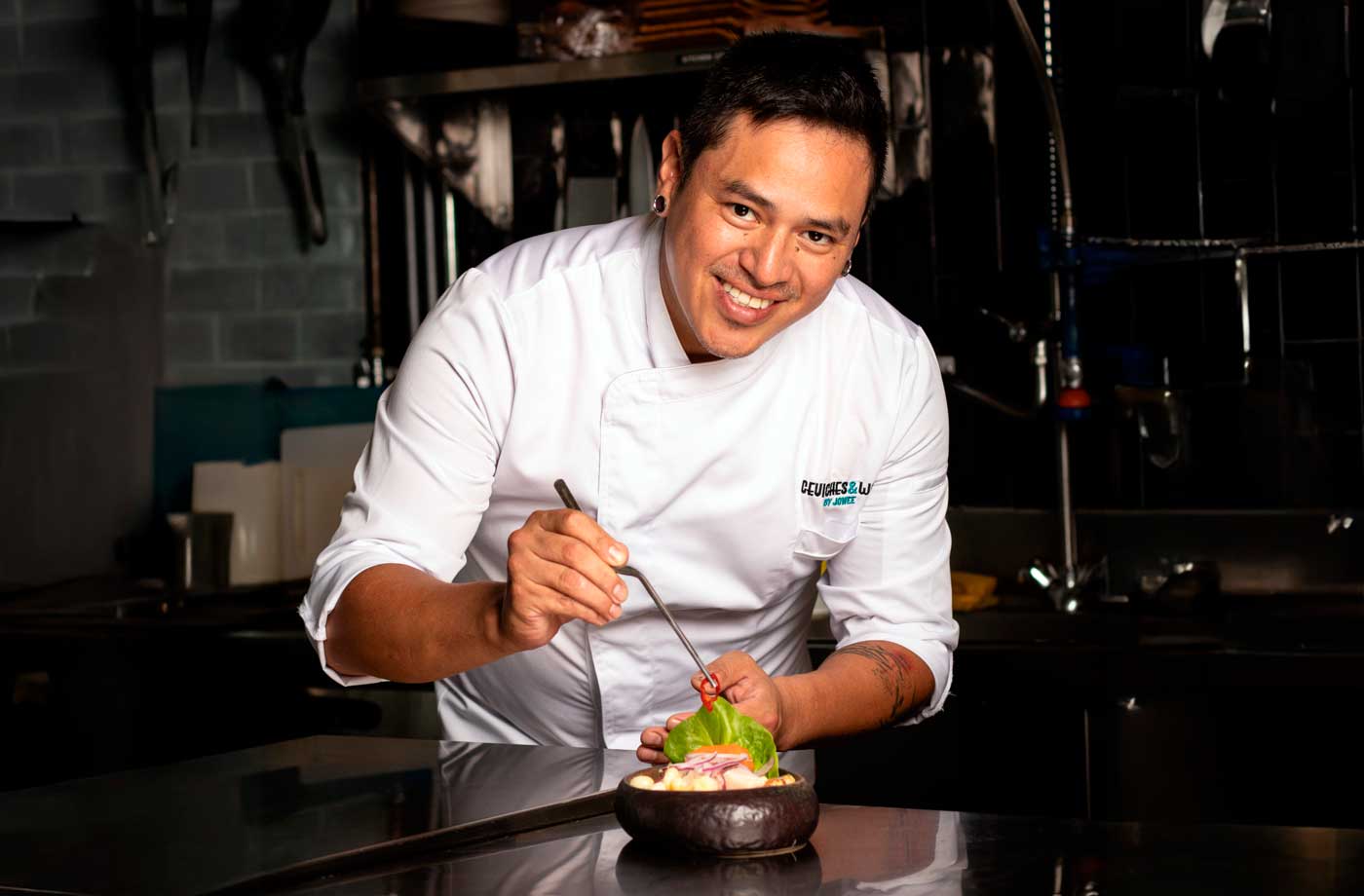 El viaje de Jowee Abregu lo ha llevado de las cacerolas familiares en su Perú natal a la Escuela de Hospitalidad Madrid, donde perfeccionó su técnica. Ha trabajado con grandes nombres de gastronomía, incluido Ferrán Adrià, y ha logrado integrar en su cocina la precisión y la creatividad aprendidas, sin renunciar a la esencia de su tierra.