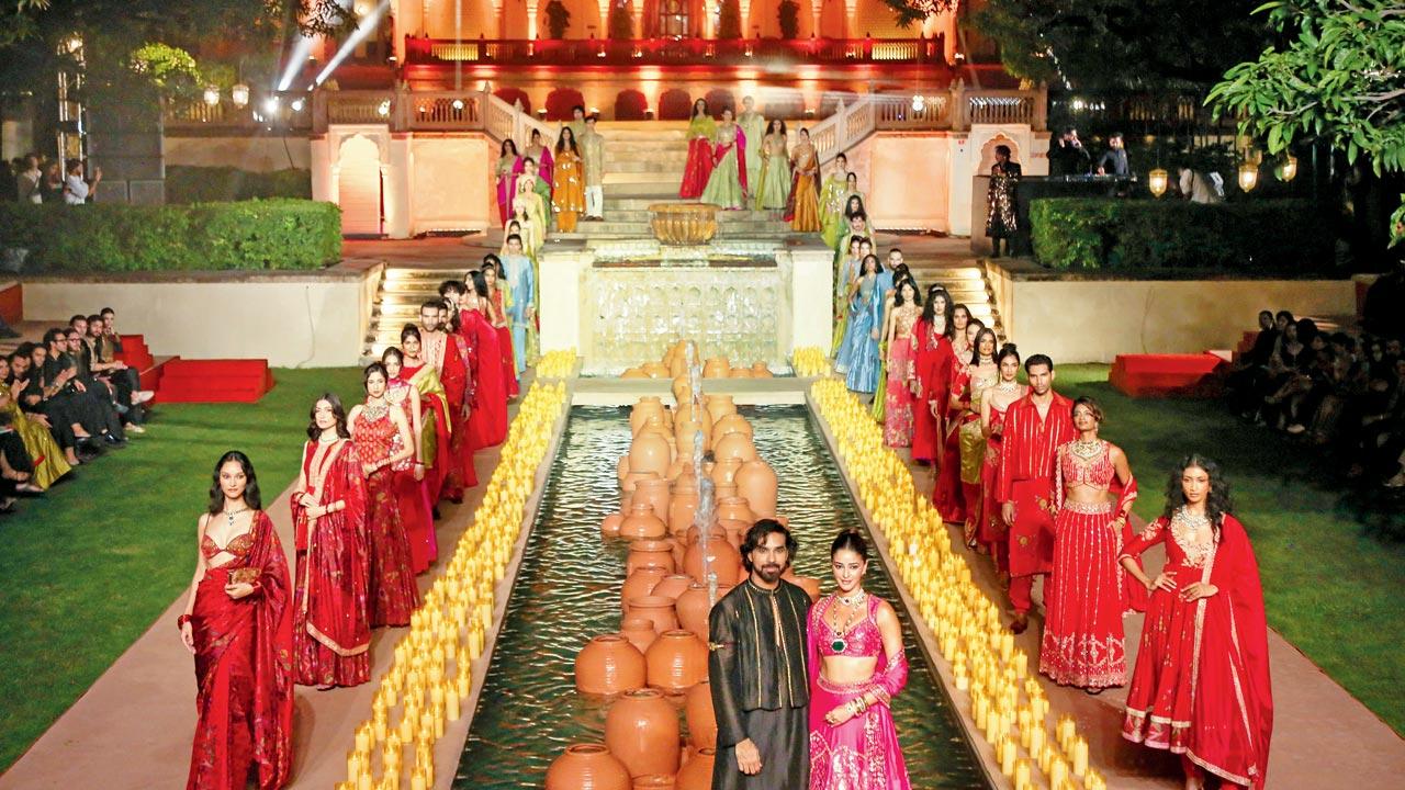 Esa noche, el majestuoso palacio de Rambagh se convirtió en un escenario para la artesanía y la narración de historias cuando Balana dio a conocer su colección festiva, Amer. Ananya Panday cerró el espectáculo en una lehenga gulal de seda bordada con Chaandi Tille Ka Kaam, mientras que Diana Penty, su primera musa, observó desde la primera fila junto a Bhumi Pednekar, Gurfateh Pirzada y Sunny Kaushal. Al marcar diez años de su trabajo, el espectáculo fue menos una pista y más un regreso a casa.