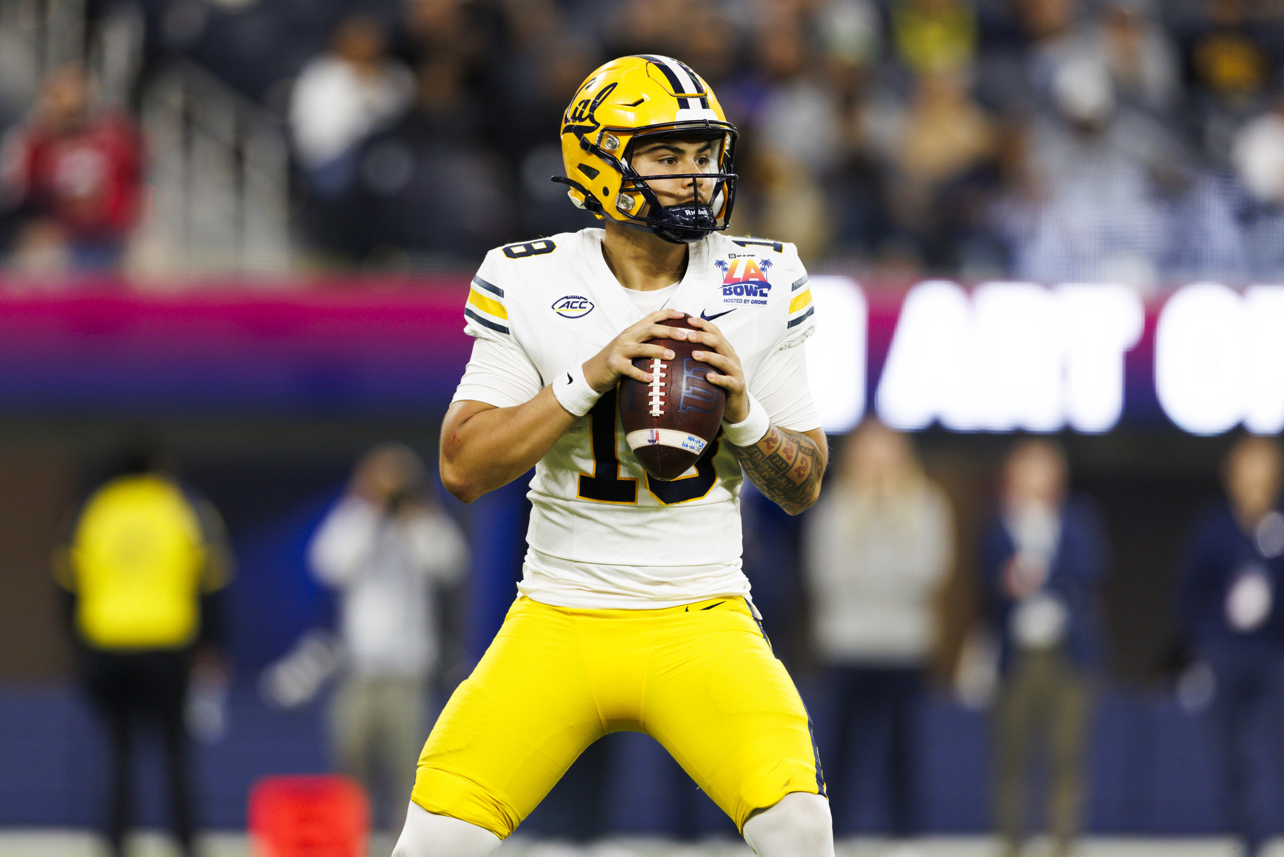 EJ Caminong #18 of the California Golden Bears drops back to pass during the second half against UNLV Rebels at SoFi Stadium on December 18, 2024 in Inglewood, California EJ Caminong #18 of the California Golden Bears drops back to pass during the second half against UNLV Rebels at SoFi Stadium on December 18, 2024 in Inglewood, California Ric Tapia/Getty Images