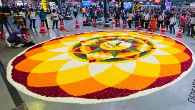 Las festividades comenzarán con una mega floración (pookalam) a las 10:30 a.m. dentro del centro comercial, creado por más de 100 artistas del Seawoods Samajam.
