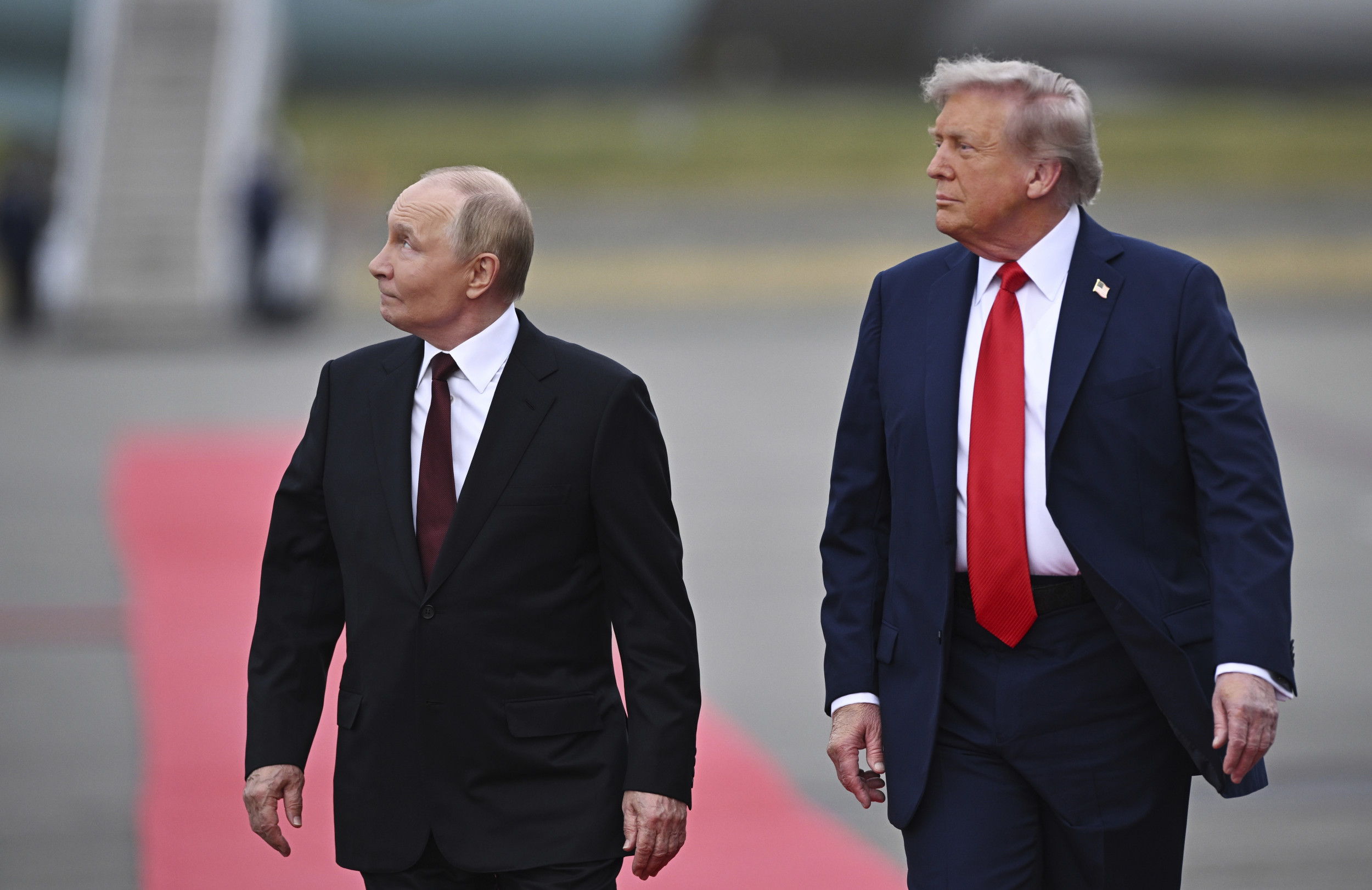 El presidente ruso, Vladimir Putin, y el presidente de los Estados Unidos, Donald Trump, caminan por el asfalto después de que llegaron para asistir a una reunión en la base conjunta Elmendorf-Richardson en Anchorage, Alaska, Estados Unidos. El presidente ruso, Vladimir Putin, y el presidente de los Estados Unidos, Donald Trump, caminan por el asfalto después de que llegaron para asistir a una reunión en la base conjunta Elmendorf-Richardson en Anchorage, Alaska, Estados Unidos. Sputnik a través de AP