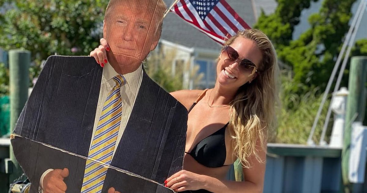 La enfermera Lexi Kuenzle posando con un recorte de cartón del presidente Donald Trump