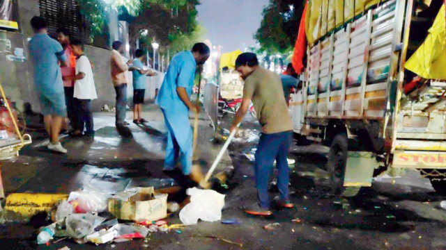 A las pocas horas de la agitación de Maratha que concluyó en el Centro de Exposiciones de CIDCO el martes, la Corporación Municipal Navi Mumbai (NMMC) se puso en acción con un enorme impulso de limpieza durante la noche que restauró la normalidad antes del amanecer. Con miles de manifestantes acampando en el lugar y las áreas cercanas en Vashi, los funcionarios cívicos habían anticipado un gran desafío de saneamiento.