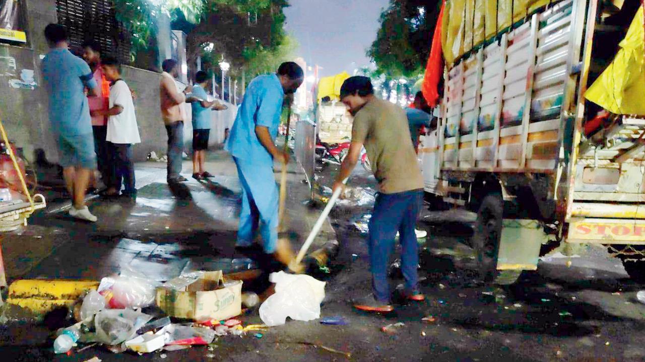 Actuando sobre las instrucciones del comisionado de NMMC Kailas Shinde, más de 100 trabajadores de saneamiento, oficiales e inspectores trabajaron durante la noche hasta las 4 a.m., armados con máquinas de barrido mecanizadas, equipos de chorro de alcantarillado y vehículos de transporte de basura. Al amanecer, habían recolectado y transportado 21 toneladas de desechos a la instalación de procesamiento de Turbhe. La limpieza cubrió no solo el centro de exhibición, sino también los tramos adyacentes del sector 30 Vashi, el área del Hotel Tunga y partes de la carretera Sion-Panvel.